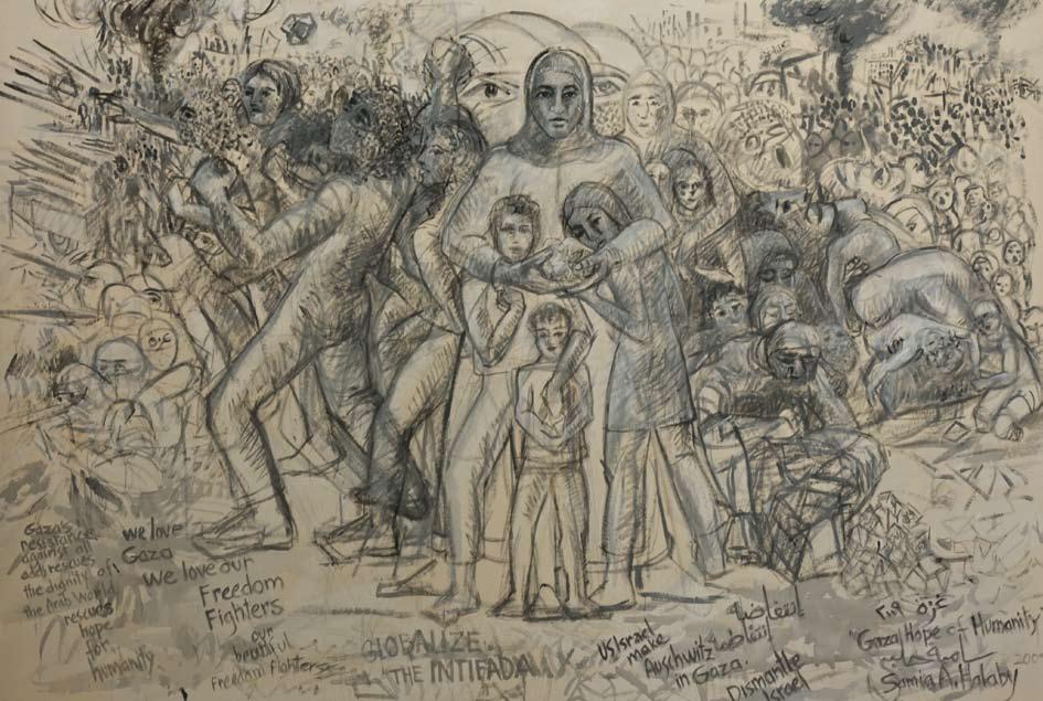 Halaby’s work is housed in several museum collections worldwide, most notably the Jordan National Gallery of Fine Arts, The British Museum, the Guggenheim Museum, The Art Institute of Chicago, and The Detroit Institute of Art. As an art historian, she has been instrumental in curating several exhibitions in the US, while her many years of researching and writing led to the publishing of Liberation Art of Palestine (2002), one of the few English-language books on contemporary Palestinian art available today.