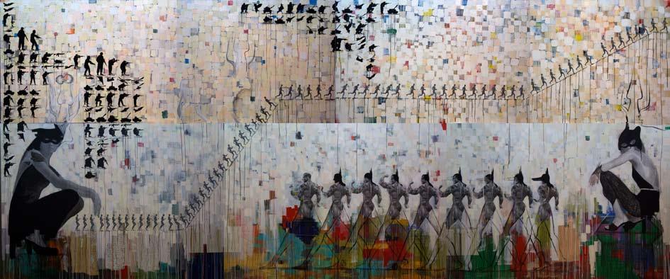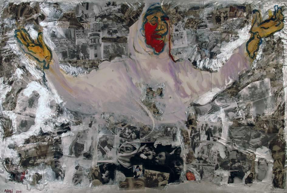 time. This often emerges through explorations of popular imagery as he identifies then deconstructs the visual signifiers that make them so potent along sociopolitical lines. Several mediums often overlap in a single piece-such as the mixing of painting and collage-as a result of such investigations. Recently, Hafez has been spotlighted in solo exhibitions in Egypt and Europe. In 2005 he received a Fulbright Fellowship as a visiting artist at the Pennsylvania Academy of Fine Arts and later received an MFA in new media and digital art from Transart Institute/Danube University Krems (New York/Austria) in 2009. His work has been featured as part of group shows in a number of prominent international museums and art spaces including the Tate Modern, the Kunstmuseum Bonn, the New Museum, the Centre George Pompidou and the Saatchi Gallery. A regular on the global art circuit, he has participated in such events as the Cairo Biennale, Manifesta in Murcia, Spain, the Dakar Biennale and the Singapore Biennale.