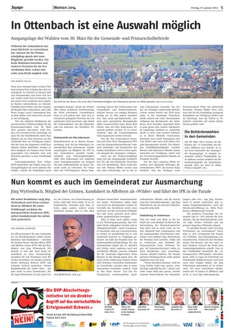 nem Schmunzeln vermerkt. Der bisher als Präsident amtierende Bezirksrichter wohnt bereits seit 2010 nicht mehr in der Gemeinde Ottenbach, durfte jedoch mit einer Ausnahmebewilligung des Bezirksrates die Amtsdauer noch beenden. Eigentlich hätte er ganz gerne eine weitere Amtsperiode angehängt, bedauert er, immerhin durfte er doch viele positive Erlebnisse in dieser Behörde verzeichnen. Ebenfalls nach zwölf Amtsjahren tritt Tom Keller und nach acht Jahren Brigitte Baumgartner zurück. Die bisherigen Schulpflegemitglieder Caroline Meister und Anastasios Minidis stehen weiterhin zur Verfügung, wobei sich der Versicherungsprokurist Minidis als Präsident bewirbt. Für die zwei vakanten Plätze bewerben sich Alexander Kitzinger, Betriebsökonom HWV, die Juristin Katja Niederer und die Zoologin Gioia