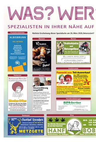 Nächste Erscheinung dieser Spezialseite am 20. März 2020. Interessiert? Bäckerei