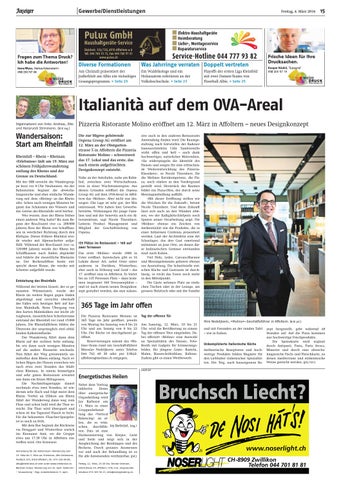 Tag der offenen Tür Am Samstag, 12. März, 10 bis 21 Uhr, wird die Bevölkerung zu einem Tag der offenen Türe eingeladen. Dabei offeriert «Molino» eine Auswahl an Spezialitäten des Hauses, FotoBooth mit Gadgets für Erinnerungsbilder, für jüngere Gäste: Basteln, Malen, Riesen-Seifenblase, Ballone. Zudem gibt es einen Wettbewerb.