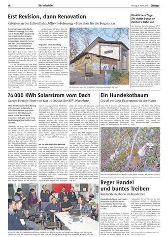 Erst Revision, dann Renovation Arbeiten an der Luftseilbahn Adliswil–Felsenegg – Frischkur für die Bergstation Der Betrieb der Luftseilbahn Adliswil–Felsenegg (LAF) wird vom 7. bis 11. März eingestellt. Der Grund für den Betriebsunterbruch sind die jährlich notwendigen Kontroll-, Revisions- und Unterhaltsarbeiten. Unmittelbar anschliessend wird die Bergstation renoviert. Auch dieses Jahr fallen wieder umfangreiche Arbeiten an, sodass der Betrieb werktags während drei Wochen eingestellt wird. An den dazwischenliegenden Wochenenden fährt die LAF fahrplanmässig. Für die Sicherheit und den Komfort der Fahrgäste werden während der dreiwöchigen Revision nicht nur die Stütze, die Seile und die Kabinen kontrolliert sowie die Bremsen geprüft, sondern auch sämtliche anderen Bauteile inspiziert und gewartet. Zudem stehen umfassende Reinigungsarbeiten an. Die jährlich obligatorische Bergungsübung sowie der Instruktionstag stehen ebenfalls auf dem Programm.