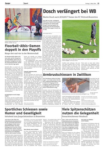 Dosch verlängert bei WB Martin Dosch auch 2016/2017 Trainer des FC Wettswil-Bonstetten Seit 2007 im Amt, verlängerte WB-Trainer Martin Dosch seinen Vertrag um ein weiteres Jahr. Morgen Samstag beginnt die Rückrunde mit dem Heimspiel auf dem Moos gegen Gossau um 16 Uhr. ................................................... von kaspar köchli