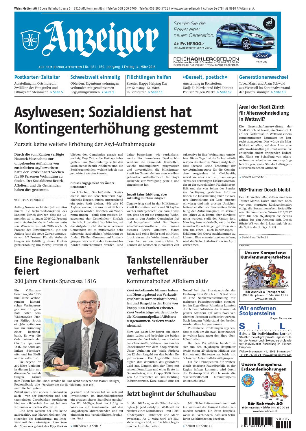 aus dem bezirk affoltern I Nr. 18 I 169. Jahrgang I Freitag, 4. März 2016