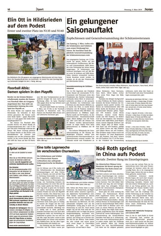 Nächster Halt: Heimischer Europacup und Junioren-WM Vom 22. bis 24. April findet in Airolo der Europacup statt, welcher als Schweizer Meisterschaft gewertet wird. Am 4. April wartet mit den Junioren-Weltmeisterschaften im italienischen Chiesa in Valmalenco das letzte grosse Saison-Highlight an. (pd.)