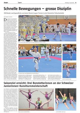 Saisonziel erreicht: Drei Bonstetterinnen an der Schweizer Juniorinnen-Kunstturnmeisterschaft Drei Mädchen aus Bonstetten dürfen am 21. und 22. Juni in Frauenfeld an der Schweizer Meisterschaft Juniorinnen im Kunstturnen teilnehmen. Es sind dies Tabea Hug im P1 (Kutu Urdorf), Sarah Fehrenbacher im P2 (Kutu Urdorf) und Janine Auberson im P4 Amateur (Kutu Obersiggental). Die drei Bonstetterinnen haben hart auf dieses Ziel hingearbeitet, dürfen doch im P1 und P2 nur je 48 und im P4 Amateur gar nur 24 Turnerinnen an der SMJ teilnehmen. Sie trainieren drei- bis viermal pro Woche, damit sie neben den Kaderturnerinnen bestehen können. Seit März haben die Mädchen diverse Qualifikationswettkämpfe bestritten und sich kontinuierlich verbessert. Nun gilt es nochmals, «Gas zu geben», um an der SMJ in den vordersten Rängen mitturnen zu können. Informationen zur SMJ findet man unter: www.smj14.ch.