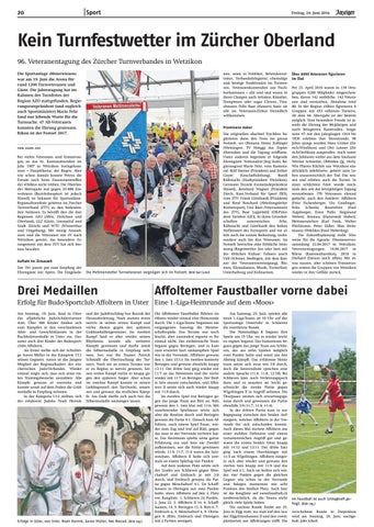 Kein Turnfestwetter im Zürcher Oberland 96. Veteranentagung des Zürcher Turnverbandes in Wetzikon Die Sportanlage «Meierwiesen» war am 19. Juni die Arena für rund 1200 Turnveteranen und Gäste. Die Jahrestagung hat im Rahmen des Turnfestes der Region AZO stattgefunden. Regierungsratspräsident (und zugleich auch Sportminister) Mario Fehr fand nur lobende Worte für die Turnsache. 47 Alt-Veteranen konnten die Ehrung geniessen. Rikon ist der Festort 2017.