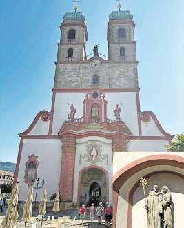 Das Fridolinsmünster mit dem heiligen Fridolin und seinem Spender Ursus.