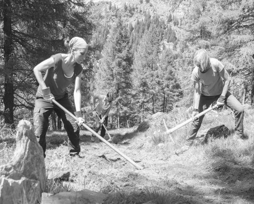 gen. Oh doch: Zwei Bikerinnen kreuzen den Weg, sonst gar niemand. Beim steilen Aufstieg zum Herzberghof, teils über Treppen, fällt ein Schild auf: «Biken und Reiten verboten.» Na ja, Biker tragen bekanntlich ihr Stahlross, wenn es steil wird. Ob das die Reiter auch könnten?