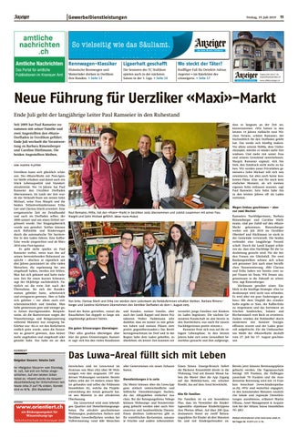 ................................................... von martin platter Uerzlikon kann sich glücklich schätzen. Der «Maxi»-Markt mit Post-Agentur bleibt erhalten und damit auch ein Stück Lebensqualität und Standortattraktivität. Vor 14 Jahren hat Paul Ramseier den Uerzliker Dorfladen übernommen. Im Laufe der Zeit wurde das Verkaufs-Team um seinen Sohn Michael, seine Frau Margrit und die beiden Teilzeitverkäuferinnen Erika Lier und Clarissa Stierli erweitert. Eine ereignisreiche Zeit im Detailhandel und auch im Dorfladen selber, der 2009 saniert und um einen Drittel vergrössert wurde. Der Eingangsbereich wurde neu gestaltet. Seither können auch Rollstühle und Kinderwagen durch die automatische Tür barrierefrei in den Laden fahren. Eine KaffeeEcke wurde eingerichtet und ab März 2010 eine Post-Agentur. Es geht nicht spurlos an Paul Ramseier vorbei, wenn man ihn auf seinen bevorstehenden Ruhestand anspricht – obschon er eigentlich seit drei Jahren pensioniert ist. «Die vielen Menschen, die regelmässig bei uns eingekauft haben, werden mir fehlen. Man hat sich gekannt und hatte meistens Zeit für einen kurzen Schwatz», sagt der 68-Jährige nachdenklich. Natürlich sei die erste Zeit nach der Übernahme, bis sich der Kundenstamm gebildet hatte, arbeitsreich und ertragsarm gewesen. Aber es habe sich gelohnt – vor allem auch zwischenmenschlich und familiär. Man habe gemeinsam gute und weniger gute Zeiten durchgestanden. Beispielsweise, als die Baarerstrasse wegen der Wasserleitungs- und Belagssanierung während Monaten nur einspurig befahrbar war. Als es vor den Rotlichtern endlich grün wurde, seien die Passanten so genervt gewesen, dass keiner mehr angehalten und eingekauft oder getankt habe. Das habe sie an den