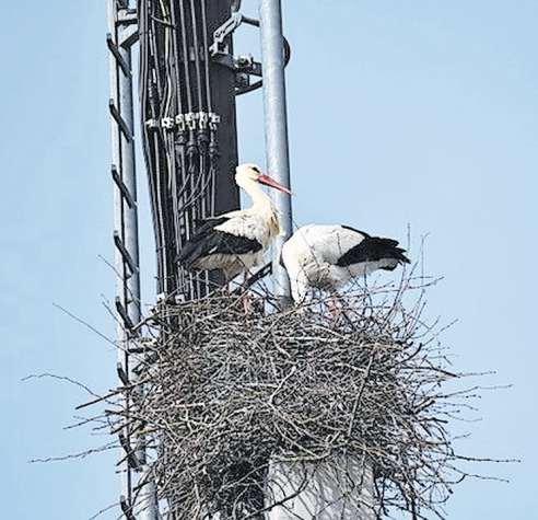Im Frühjahr fotografierte «Anzeiger»-Leser Urs Gretler dieses Storchenpaar. Es hatte sich auf der Mobilfunkantenne in der Nähe des Bahnhofs Bonstetten niedergelassen. Am 2. September hat die Netzbetreiberin Sunrise das Nest nun entfernt. Eine Bewilligung lag allerdings nicht vor. (lhä) Seite 3