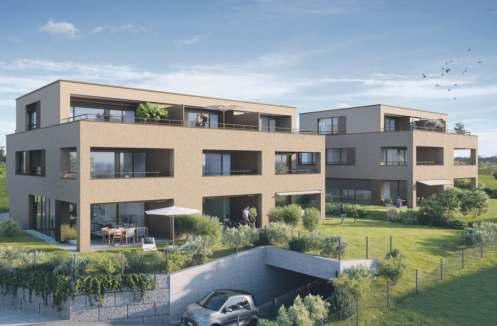 nen – bietet das Projekt weitere Wohnformen wie ein kompaktes Small House und zwei moderne Mehrfamilienhäuser mit Eigentumswohnungen in unterschiedlichen Grössen. Ein integrierter Gewerbeteil bringt Leben und Arbeiten näher zusammen.
