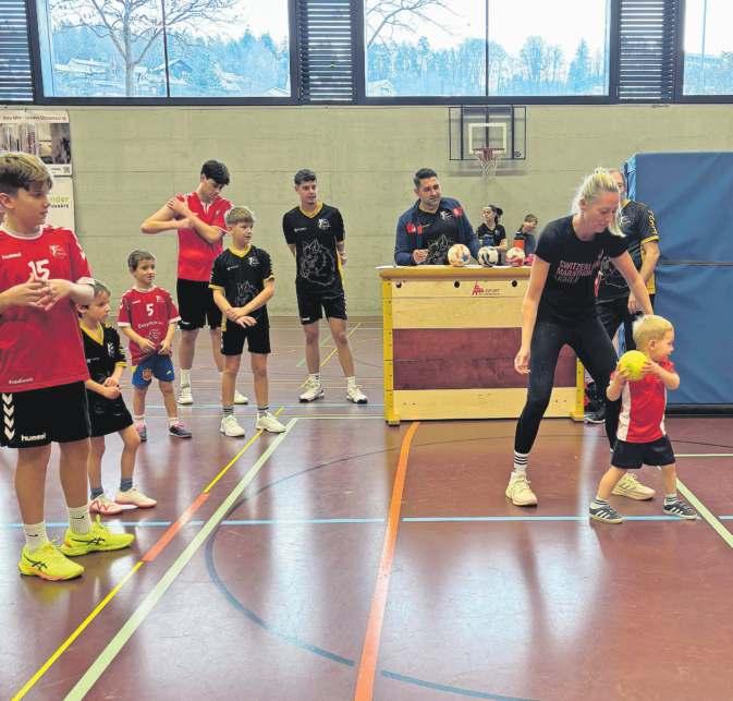 ten wurde gelacht, gekämpft und angefeuert: Zum Beispiel musste an einem Posten ausnahmsweise nicht das Tor, sondern Latte und Pfosten getroffen werden. Anderswo wurden möglichst viele Tennisbälle in einem Kasten versenkt, und am nächsten Ort blinde Kühe und Stiere manövriert – nein, natürlich Handballerinnen und Handballer mit verbundenen Augen durch einen Parcours gelotst.