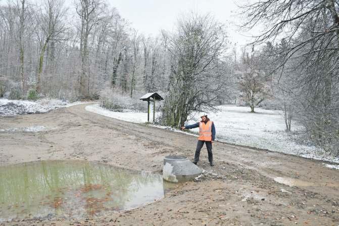 Noch sehe es aus wie eine «Pfütze», so Barbara Krummenacher von der Fachstelle Naturschutz und zeigt auf einen Weiher. Aber bereits im nächsten Jahr werden hier besonders wertvolle Pflanzen wachsen, die neuen Lebensraum für seltene Arten bieten werden. Im Zuge der Moorregeneration entstehen Feuchtbiotope. (cle) Seite 10