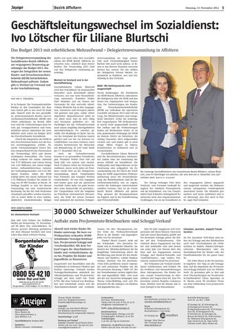 Sonderseiten: Kurt Haas, Mediaberatung Telefon 058 200 5718, M 079 270 35 67 info@mein-mediaberater.ch Tarife: www.affolteranzeiger.ch Annahmeschluss: Dienstagsausgabe: Montag, 8.00 Uhr Freitagausgabe: Mittwoch, 16.00 Uhr Todesanzeigen: 11.00 Uhr am Tag vor Erscheinen Aboservice: abo@affolteranzeiger.ch Telefon 058 200 5700, Fax 058 200 5701