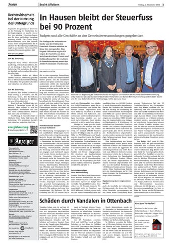 Tarife: www.affolteranzeiger.ch Annahmeschluss: Dienstagsausgabe: Montag, 8.00 Uhr Freitagausgabe: Mittwoch, 16.00 Uhr Todesanzeigen: 11.00 Uhr am Tag vor Erscheinen