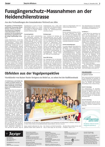 Sonderseiten: Kurt Haas, Mediaberatung Telefon 058 200 5718, M 079 270 35 67 info@mein-mediaberater.ch Tarife: www.affolteranzeiger.ch Annahmeschluss: Dienstagsausgabe: Montag, 8.00 Uhr Freitagausgabe: Mittwoch, 16.00 Uhr Todesanzeigen: 11.00 Uhr am Tag vor Erscheinen Aboservice: abo@affolteranzeiger.ch Telefon 058 200 5700, Fax 058 200 5701