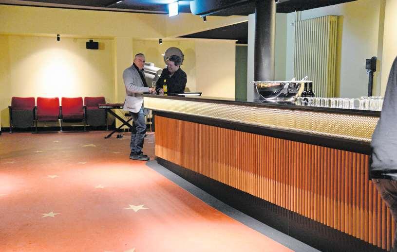 Die Raucherinnen und Raucher versammeln sich draussen vor dem Haus Das Foyer ist zudem ein «Walk of Fame», die Sponsoren haben abhängig von der Grösse des Engagements einen Stern im Boden Ein Ort der Kultpotenzial hat, genauso wie der ehemalige Kinosaal, der den Charme der Fünfzigerjahre bewahrt hat