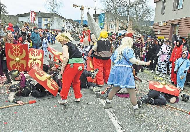 Knutwil wehrt sich: Asterix und Obelix liefern sich eine Strassenschlacht in Dagmersellen BILD: ALFRED WEIGEL
