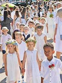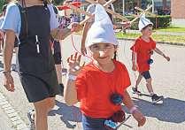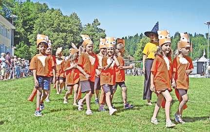 Der Umzug mit der gesamten Schule, von der Spielgruppe bis zur Oberstufe, sorgte für farbenfrohe Bilder Mädchen mit Blumenkränzen Bobbycars Musikvereine und ein fröhlich winkender Nachwuchs zauberten vielen Besucherinnen und Besuchern ein Lächeln ins Gesicht