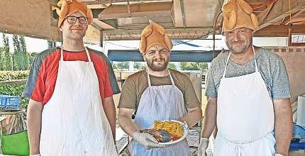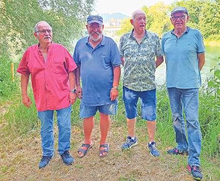 Walter Näf sind die 75- jährigen und haben für die Männerturner eine kleine Feier organisiert und auf die Insel in der Aare eingeladen Plus steht für Beni Frey, 80-jährig und Charly Grob, Jahrgang 1952 Die Geladenen wurden mit zwei Booten am Aaresteg abgeholt und auf die Insel gefahren Gefeiert wurde mit Mineralwasser und Bier und zum Essen: feine Steaks und Bratwürste mit drei verschiedenen Salaten Nachdem alle wieder trockenen Fusses bei der Aarewoog gelandet sind ging es zum Abschluss ins Circolo BENJAMIN FREY