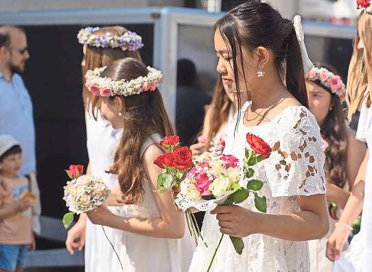 Blumensträusse und Rosen gehören am Kinderfest dazu