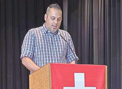 Aufgrund der unsicheren Wetterprognosen wurde die Bundesfeier in die festlich geschmückte Turnhalle verlegt Rund 250 Teilnehmende sorgten für eine rekordverdächtige Besucherzahl und eine eindrückliche gemeinschaftliche Stimmung Die Festrede hielt Sepp Büeler der in der Gemeinde viele Jahren den Dorfladen betrieb