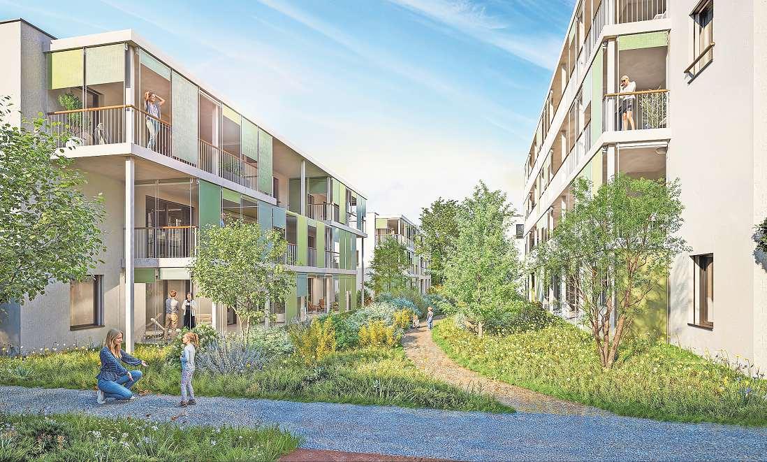 durch ruhige Innenhöfe entstehen, die zugleich Platz für Begegnungen im Alltag bieten