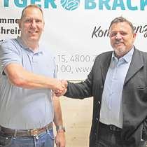 Die Geschäftsinhaber der E Widmer AG, Sonja und Thomas Scheiber, mit der Spende an die Schweizer Berghilfe BILD:ZVG