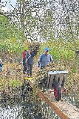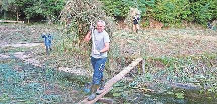 herauszutragen, den Weiher-Zulauf von Schlick und Sand zu befreien, Randsteine zu reinigen Zweige zurückzu-