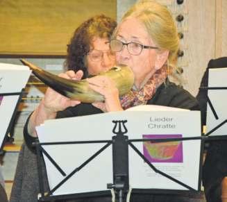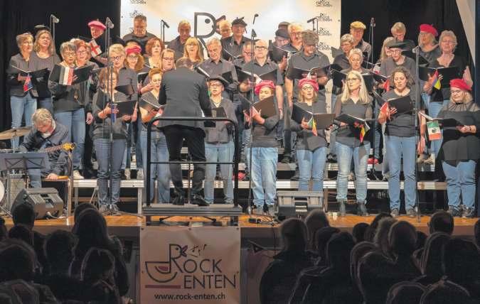 «The Code» moderne Klänge auf die Bühne. Besonders berührte der gefühlvolle Patent­Ochsner­Song «Für immer uf di». «Ein schönes Lied», rief eine ältere Dame begeistert aus dem Publikum. Die Trompeter Christoph Spirgi, AndréLüscherundFlavioWaltenspühl sowie Aurora Kaufmann am Altsaxophon überzeugten dabei mit Soli. Mit dem kraftvollen «Santiano­Medley» wurde es maritim und rockig, bevor das Konzert mit südamerikanischem Temperament seinem Höhepunkt entgegensteuerte. «Latin Trumpets» und «Samba Lélé» bildeten das mitreissende Finale. Das Publikum dankte mit langem Applaus. Für zusätzliche Unterhaltung sorgten Präsident André Lüscher und Modera­