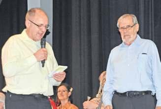 André Lüscher (links) und Hansueli Widmer moderierten den Konzertabend gemeinsam.