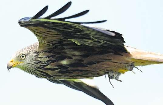 Flug der Maus: Der Greifvogel hält seine Beute zwischen den Krallen. FOTO ANDREAS BERGER ZWINGEN