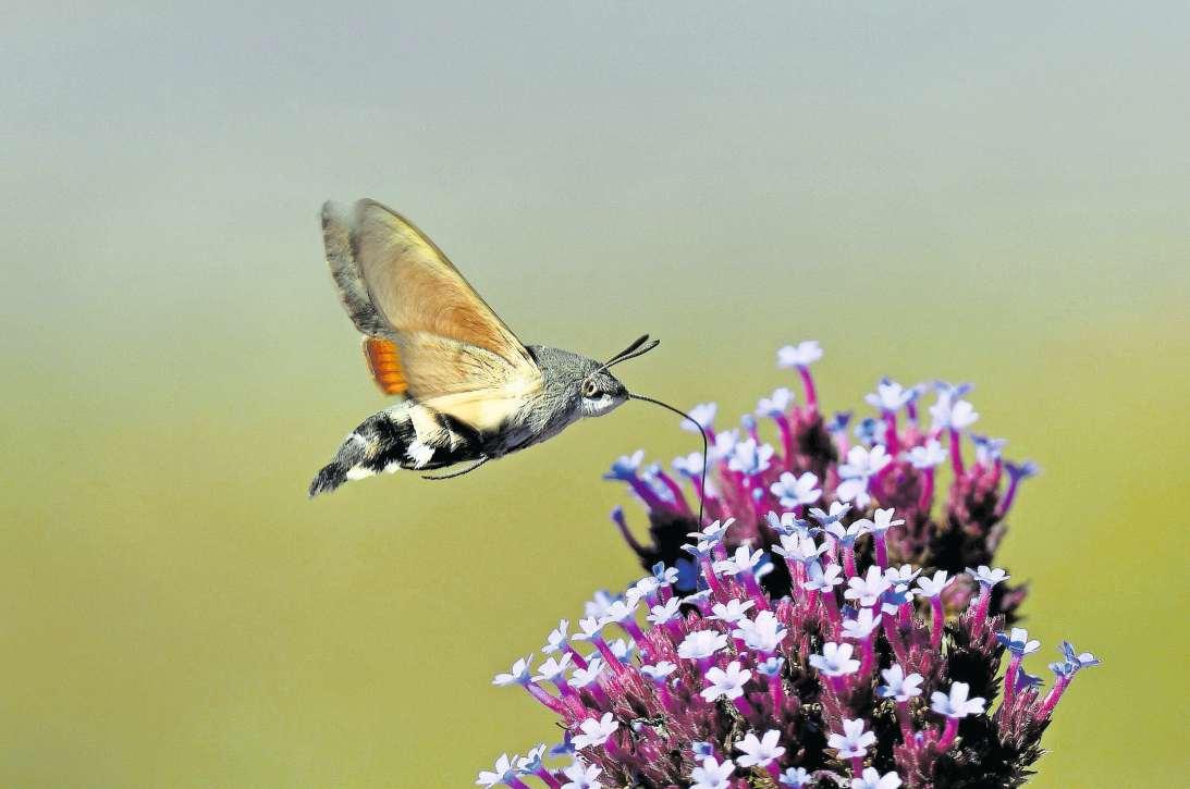 Flugverhalten wie ein Kolibri: Wochenblattleser H Vonlanthen hat dieses Taubenschwänzchen in einem Blumengarten bei der Nektarsuche entdeckt Da der Falter ähnlich wie ein Kolibri fliegt, wird er auch Kolibrischwärmer genannt Die Redaktion bedankt sich für dieses gelungene Foto!