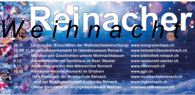 Adventszirkus: Adventssingen. Zirkuswiese. 16 bis 21 Uhr. Kammermusik. Ref. Kirche. 17 Uhr. «Der Silvester und das Jahrkind» des Lichteurythmie-Ensembles. Klinik Arlesheim. 19.30 Uhr.