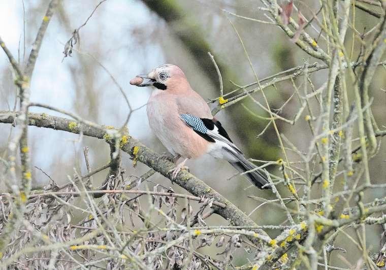 Entdeckt an der Birs in Laufen: Ein Eichelhäher mit einer Eichel im Schnabel FOTO: FR EDR CH HÄNGGI GRINDEL