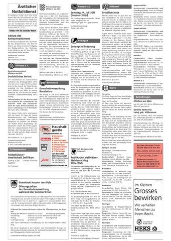 Samstag, 9. Juli 2011 (Huuser Chilbi) Die Entsorgungssammelstelle Chratz bleibt infolge Chilbi am Samstag, 9. Juli 2011, geschlossen. Gemeindeverwaltung Hausen am Albis