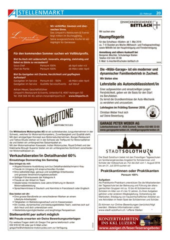 Stellenantritt per sofort möglich Mit Freude erwarten wir Deine Bewerbungsunterlagen Für weitere Fragen steht dir Gregor Frei gerne telefonisch unter 032 618 02 09 oder per E-Mail unter: gregorfrei@whitestone-motorcycles.com zur Verfügung.