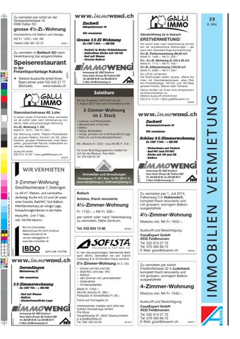 4½-Zimmer-Wohnung Mietzins inkl. NK Fr. 1650.–. Auskunft und Besichtigung: CasaExpert GmbH 4532 Feldbrunnen Tel. 032 613 27 70 Tel. 079 392 68 72 E-Mail: gzex@bluewin.ch
