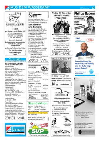Einsprachefrist: 13. Oktober 2011 Planauflage: Einwohnergemeinde Zuchwil Gemeindeverwaltung Abteilung Bau und Planung Hauptstrasse 65, 4528 Zuchwil Einsprachen sind schriftlich und begründet im Doppel an die Abteilung Bau und Planung z.H. der Baukommission zu richten.