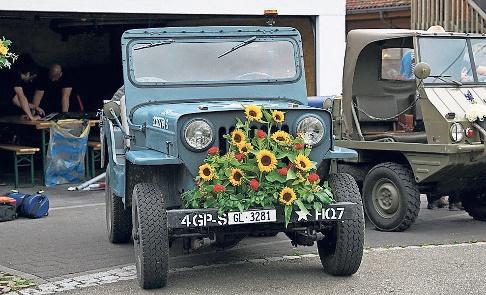 Am Manövertag versammeln sich die CCSler im Garten von Chef Cortège Sécurité Manuel Silva. Ein Anblick für Geniesser: bunt geschmückter Fuhrpark, rote