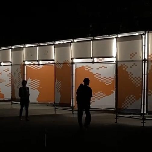The supergraphic concept was inspired by the Indonesia archipelago treated with a contemporary approach, resulting in organic abstractions of the islands with pixelated shapes. A wide range of supergraphic iterations was created, which will be printed on sheets of fabric mesh that will be arranged to create a continuous form. The semitransparent characteristic of fabric mesh was combined with lighting from inside the modules that will highlight the supergraphic during night time.
