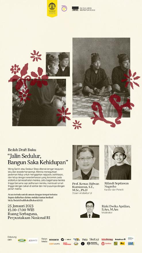 Ekskursi Arsitektur UI is an annual event held by Departemen Arsitektur Universitas Indonesia with the aim to documenting vernacular architecture in Indonesia. In 2022, Ekskursi went to Blora and Bojonegoro to document Wong Sikep's vernacular architecture, culture, and way of life. The documentations are then showcased through an exhibition that are open for public, a book, a film, and additional contents through website and social media.
