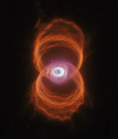 estado final de su evolución (como sucederá con el sol dentro de unos 5.000 millones de años). En las nebulosas planetarias, las ráfagas de gas se desprenden de la superficie de la estrella, «a menudo describiendo intrincadas y bellas formas», y brillan por la intensa radiación ultravioleta de la estrella moribunda, pálida pero muy caliente. Los científicos explican que, probablemente, Hélix esté compuesta al menos por dos discos separados y tenga anillos externos y filamentos; el disco interno más brillante se expande a una velocidad de 100 mil kilómetros por hora y ha tardado unos 12 mil años en formarse. Su estructura es compleja y en el interior del anillo se observan también pequeñas manchas, conocidas como nudos de cometa, con colas que se extienden desde la estrella central y parecen «gotitas de líquido que resbalan por un vidrio».