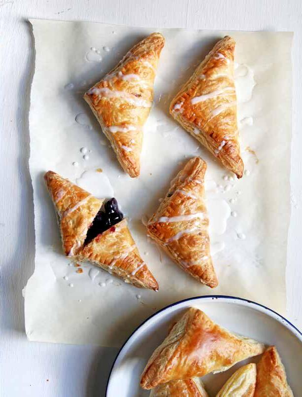 Brush egg wash over each edge of the pastry dough and fold in half to make a triangle. Press edges together with fingers. Pierce the top of each turnover with a fork or knife to let steam escape.