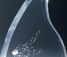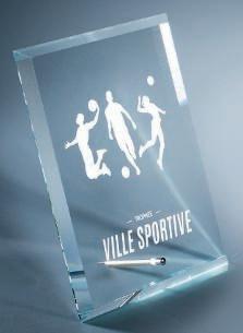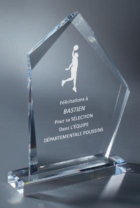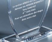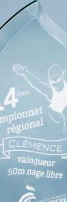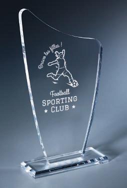 Le trophée est découpé par laser dans une plaque en acrylique transparente