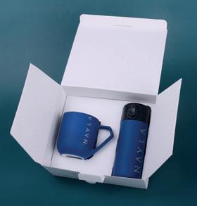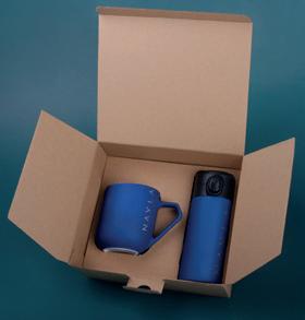 Customized Vega thermal mug, perfect for all kinds of trips, in a duet with an impressive porcelain Impress mug. The set is packed in a dedicated eco-friendly Snowy packaging. The whole thing is provided with an elegant, personalized sleeve.