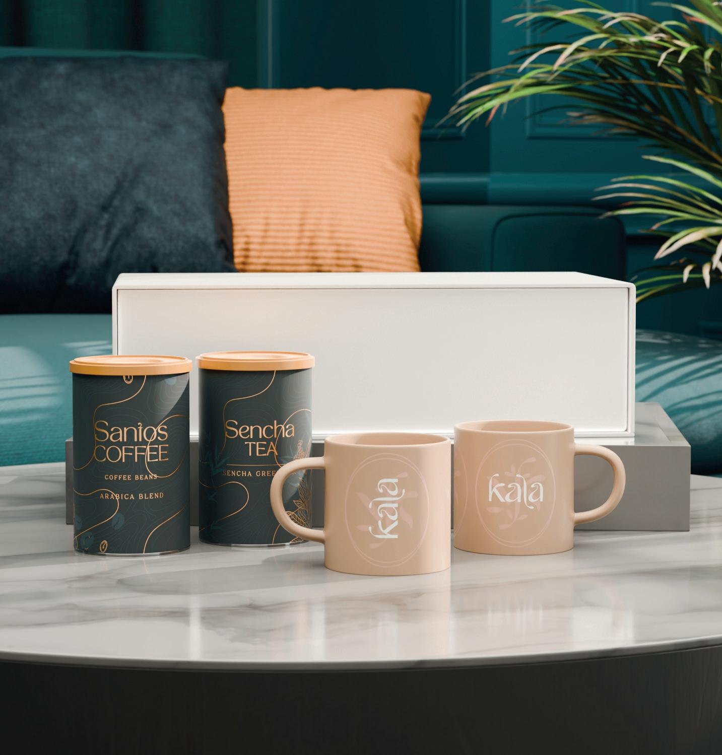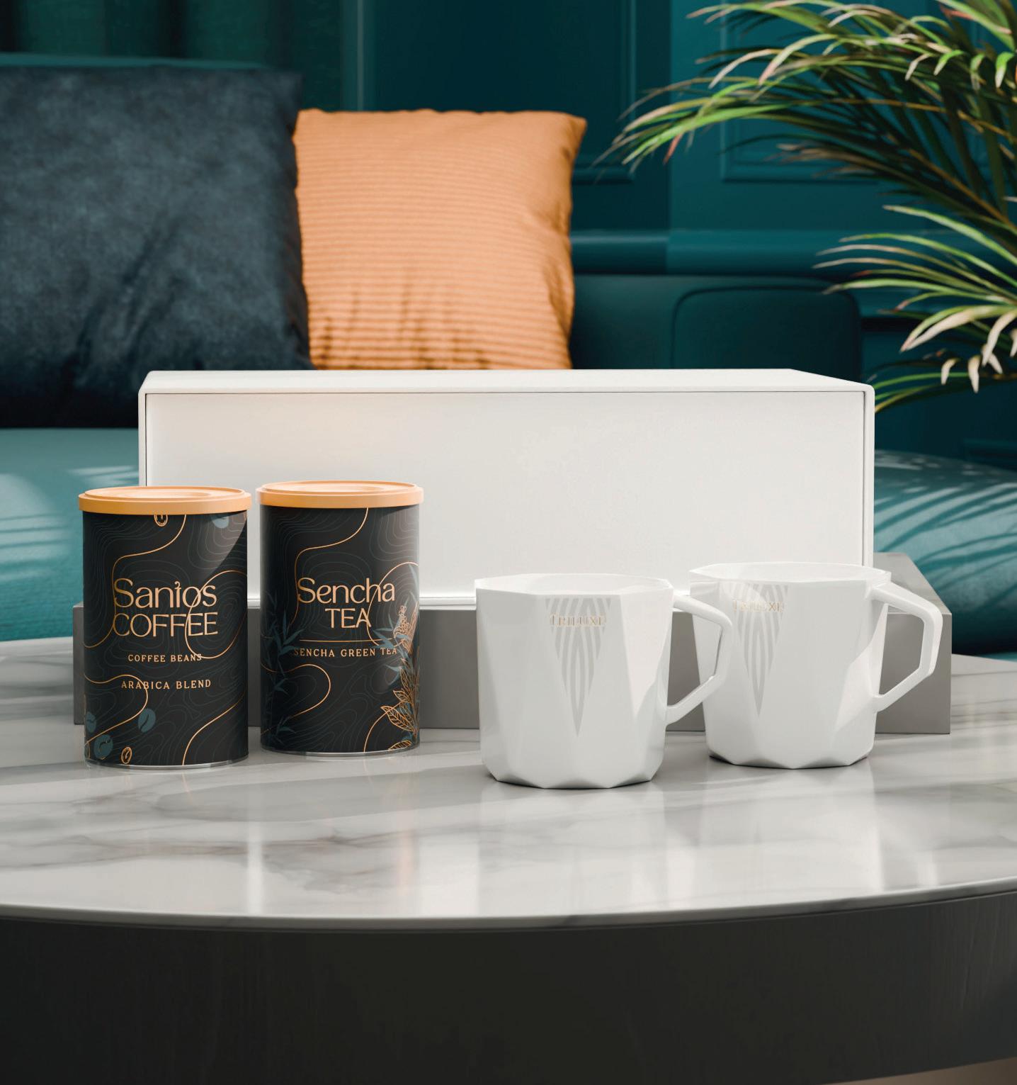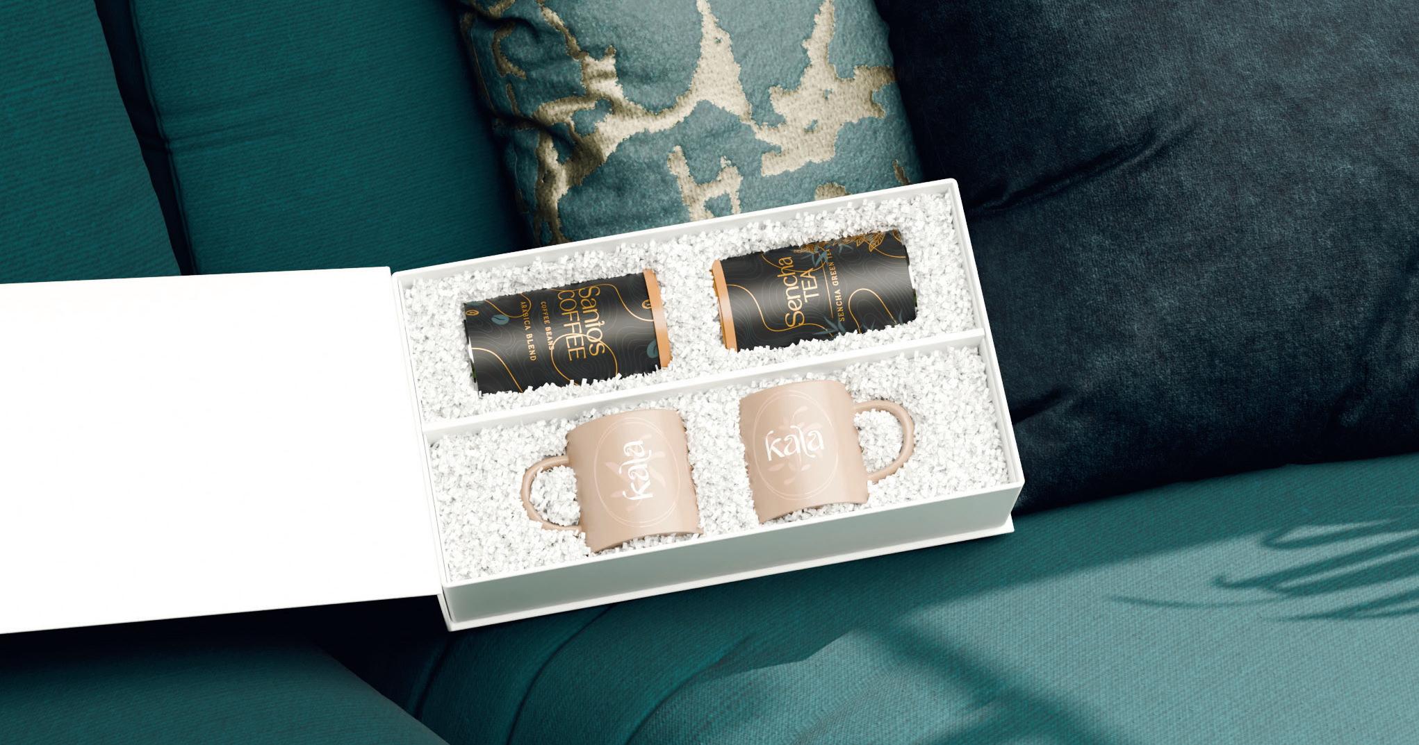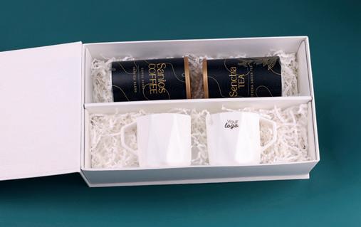 A subtle duo of two Gaia mugs with balanced, natural colouring, ideal for highlighting a commitment to ethics and ecology. The set is complemented by selected „Santos Coffee” and aromatic „Sencha Tea” in elegant tins. The whole is packed in an exclusive, snow-white box with a magnetic closure.