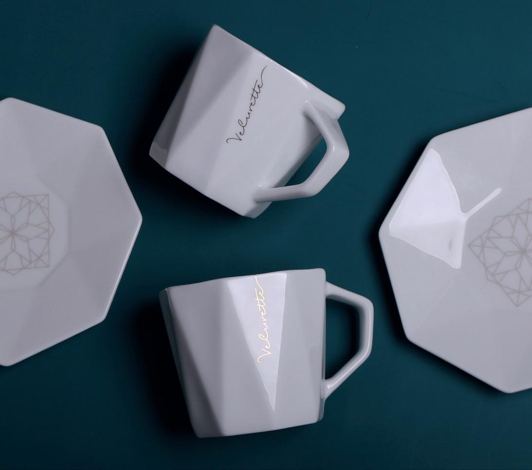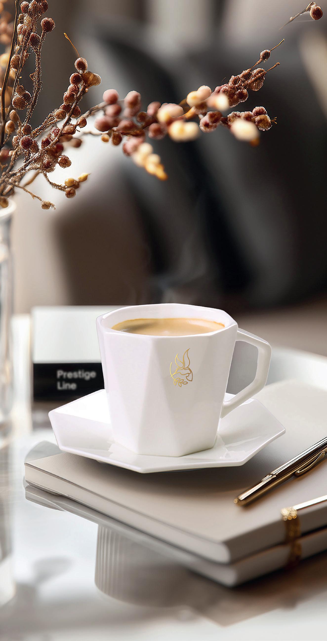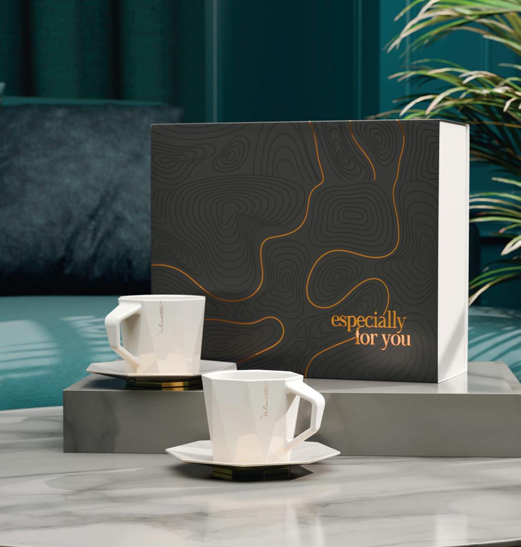 Prestigious set consisting of Tiara set cups made of the highest quality Fine Bone China porcelain. Created with the utmost attention to every detail, they surprise with their geometric, modern shape. The set is packed in a dedicated eco-friendly Enlight packaging. The whole thing is provided with an elegant personalized sleeve.