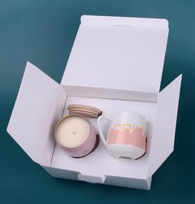 Subtle porcelain Eris mug with a customized ecological, soy wax-filled Glamour candle. The candle has a lid that allows the scent to stay longer, which can also be branded. The set is packed in a dedicated eco-friendly Snowy packaging. The whole thing is provided with an elegant, personalized sleeve.